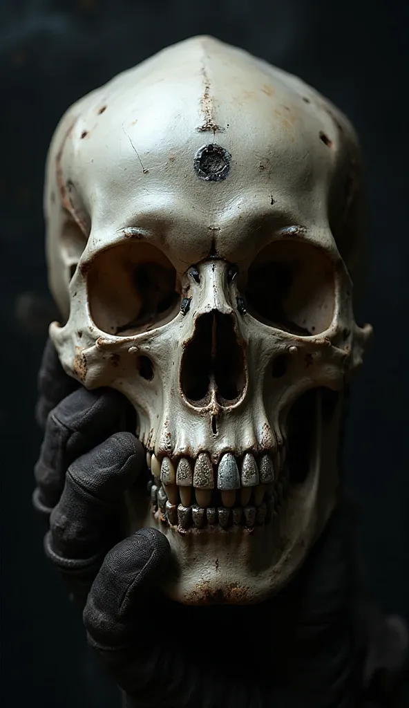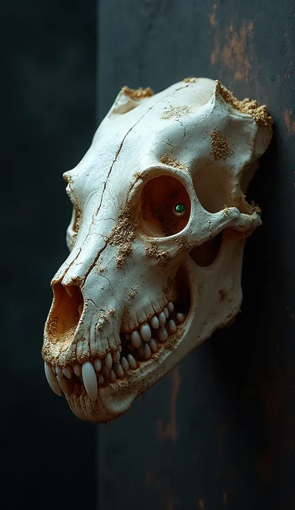 Ossuary Gaze is an art style devoted to skull-based portraits, rendering figures as sacred, dramatic structures of bone. It focuses on the skull itself—whether human, animal, or hybrid—using chiaroscuro lighting to carve out bone edges from deep shadow. The style's visual language is one of solemn reverence, with textures of weathered ivory and polished bone often accented by glowing fractures or dripping ink. The atmosphere is dominated by a sense of inevitability and strength, capturing mortality as identity and the beauty of what remains after flesh has faded.